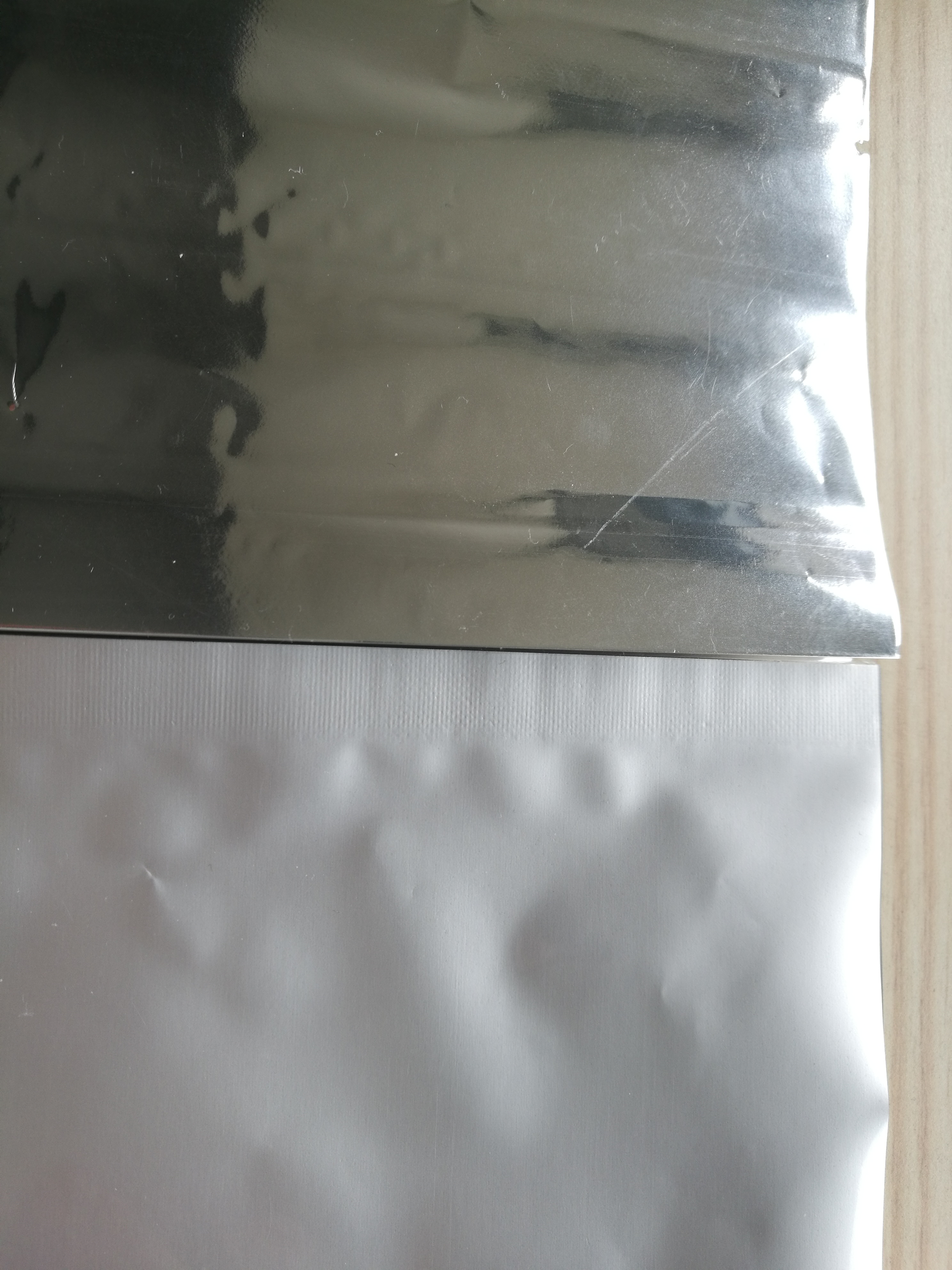 (上包裝袋為鍍鋁包裝袋,下包裝袋為鋁箔包裝袋)